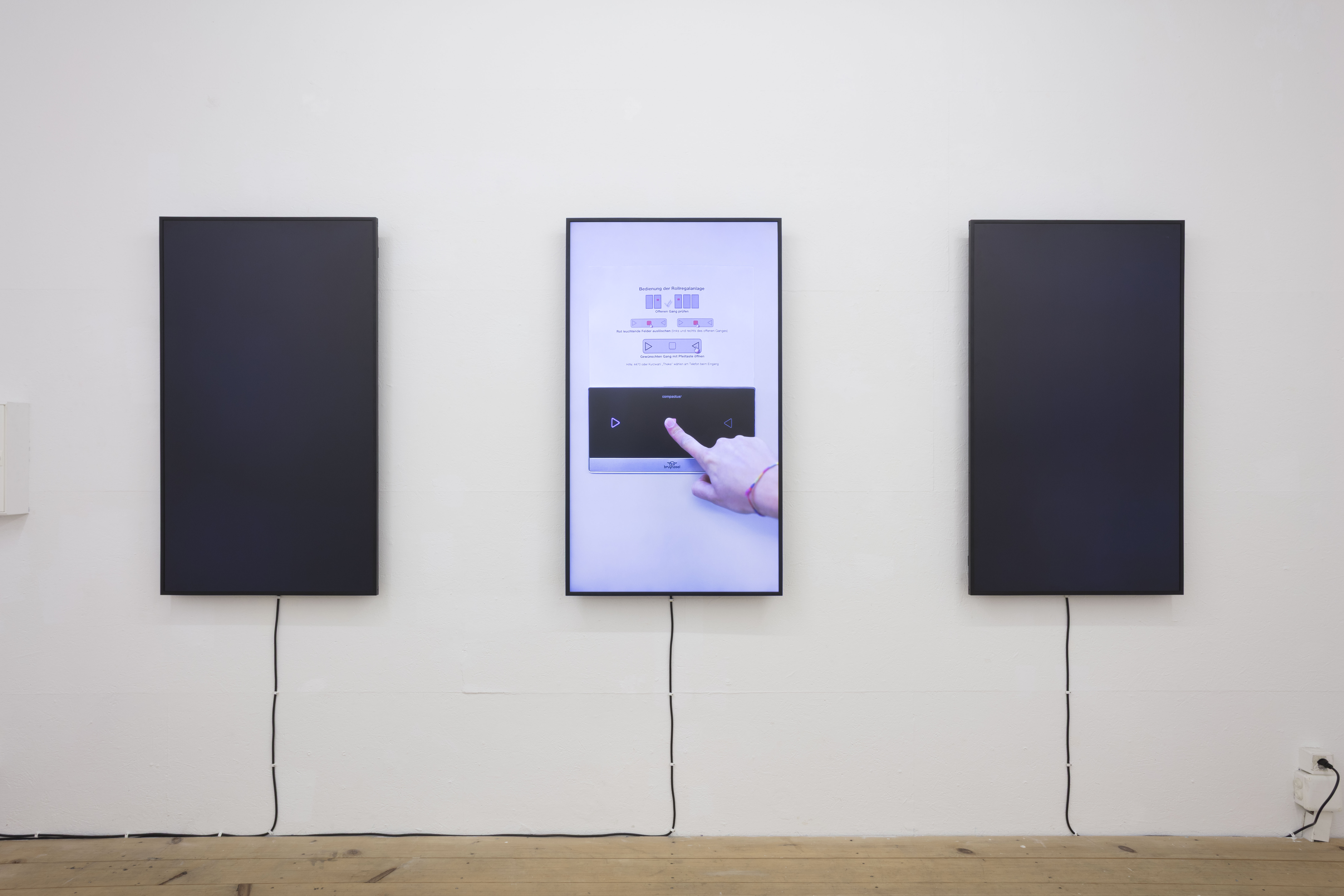Die von Text und drei Malereien begleitete Videoinstallation «mains d’oeuvre» hinterfragt auf subtile Weise die Bedeutung von Worten und Meinungen sowie deren Rechte. Durch die Gesten weisser Hände reflektiert Monika Emmanuelle Kazi die soziale Hierarchie, in der wir alle gefangen sind.